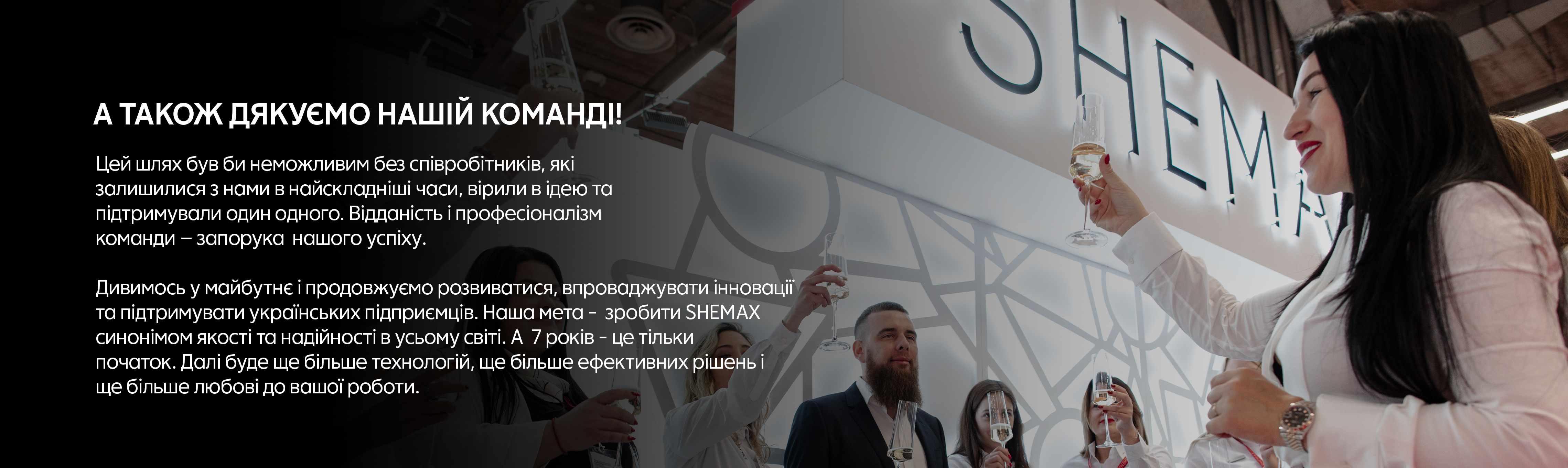 Дивимось у майбутнє і продовжуємо розвиватися, впроваджувати інновації та підтримувати українських підприємців. Наша мета - зробити SHEMAX синонімом якості та надійності в усьому світі.